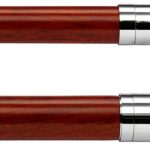 A: The pens feature a beautiful combination of rich, brown Rosewood for the main body section, complemented by durable, polished metal accents on the tips, clips, and caps.