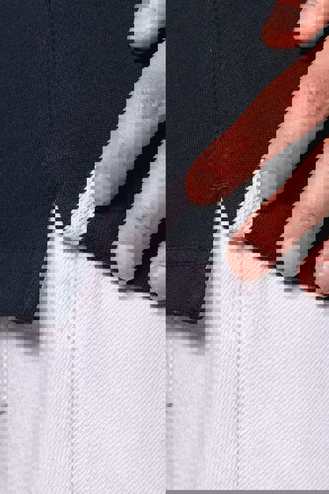 100% Gekamd katoen. Voorgekrompen gekamd jerseykatoen. Kraag in contrasterend wit twillkatoen (behalve de kleuren Red en Dark Grey, die een zwarte kraag hebben). Lijst met 3 knopen. Mouwuiteinden in 1×1 ribboord. Afwerking met visgraatmotief op de binnenzijde van de kraag en aan de zijsplitten.