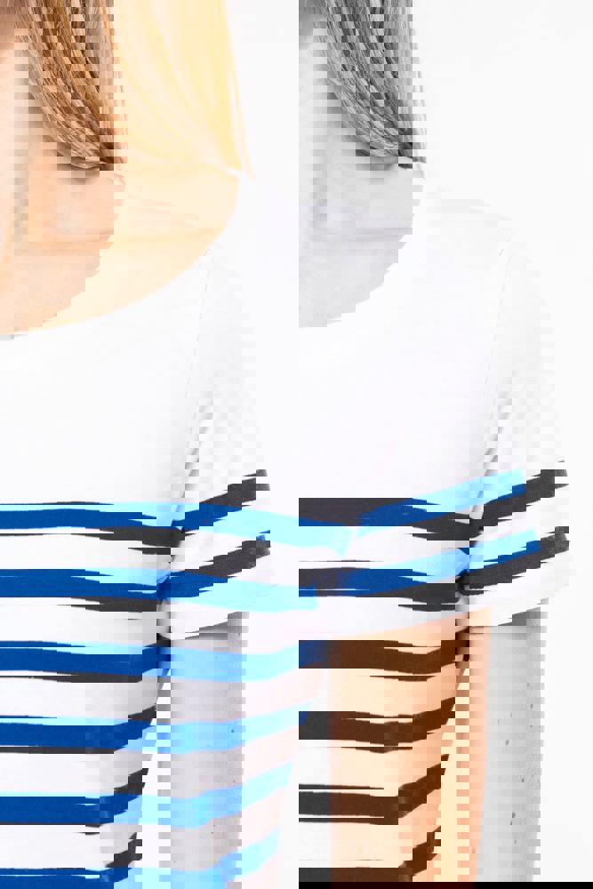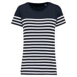 100% katoen. Dit T-shirt werd gemaakt van 100% biologisch gekamd katoen. Rechte snit. Enzymgewassen. Ronde halsopening met 1×1 ribboord. Gebreide strepen. Nektape. Dubbel stiksel aan mouwuiteinden en onderkant. Geen merklabel, voor eenvoudige personalisatie.