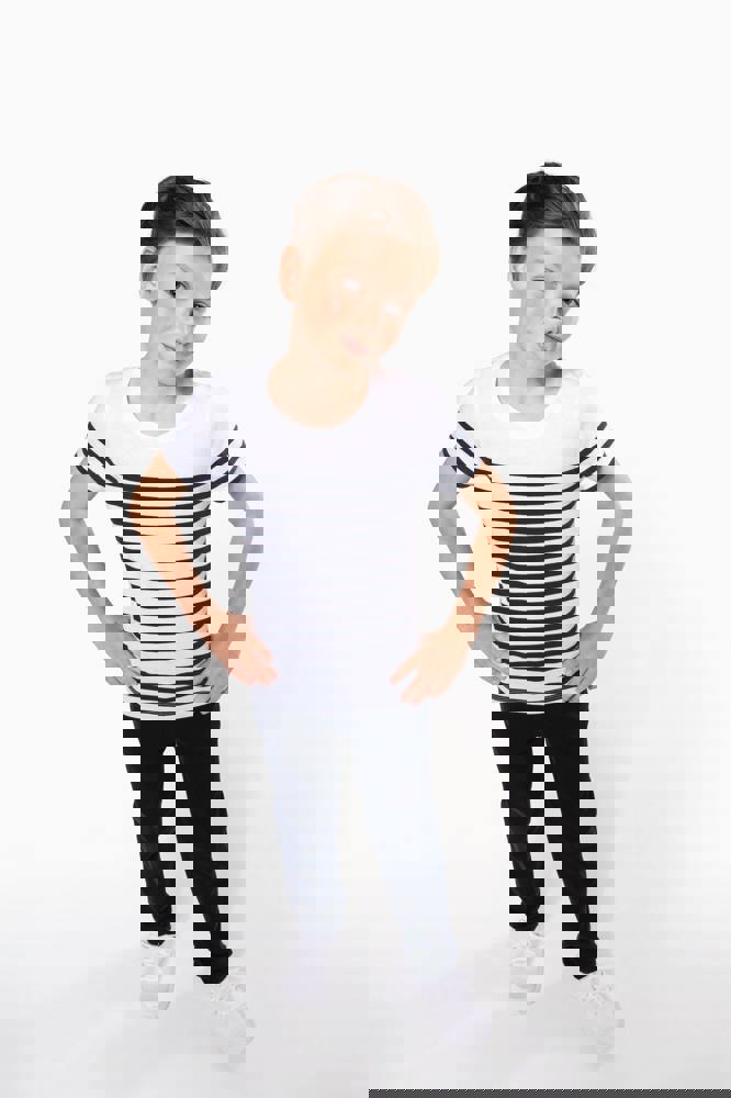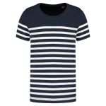 100% katoen. Dit T-shirt werd gemaakt van 100% biologisch gekamd katoen. Rechte snit. Enzymgewassen. Ronde halsopening met 1×1 ribboord. Gebreide strepen. Nektape. Dubbel stiksel aan mouwuiteinden en onderkant. Geen merklabel, voor eenvoudige personalisatie.