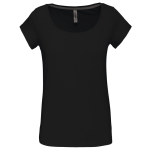 100% katoen. Enzym behandeld gekamd katoen. Wijde ronde boothals. Nektape (toon op toon voor White en Heather Grey voor de overige kleuren). Getailleerde snit. Afwerking met dubbele stiksels.