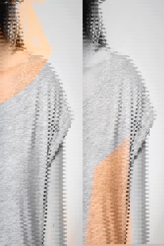 100% gekamd jerseykatoen (Light Grey Heather : 90% katoen / 10% viscose). Comfortabele snit. Brede halsopening met nektape en mouwopeningen afgewerkt met omslagen. Afgerond en dubbel stiksel onderaan. Geen merklabel in de kraag, maar enkel een maatlabel voor eenvoudige personalisatie.