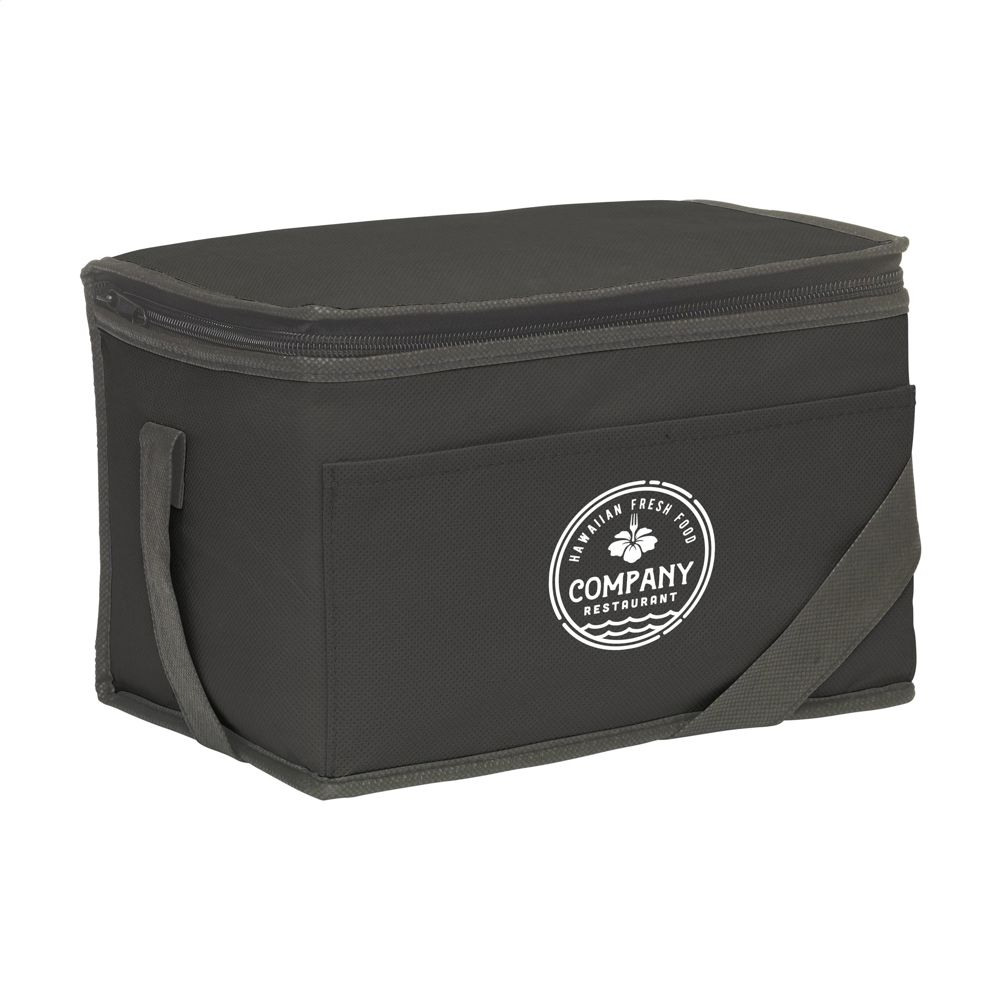This product is designed for businesses, associations, and events. You can use the cooler bag as a giveaway during trade fairs or corporate outings. It holds up to six drink cans or various food items. The lightweight design and carrying strap make it suitable for outdoor use and travel.
