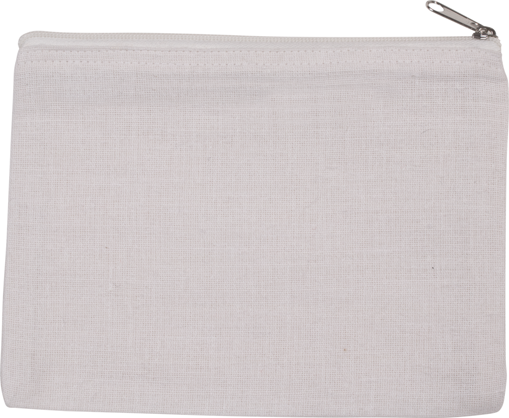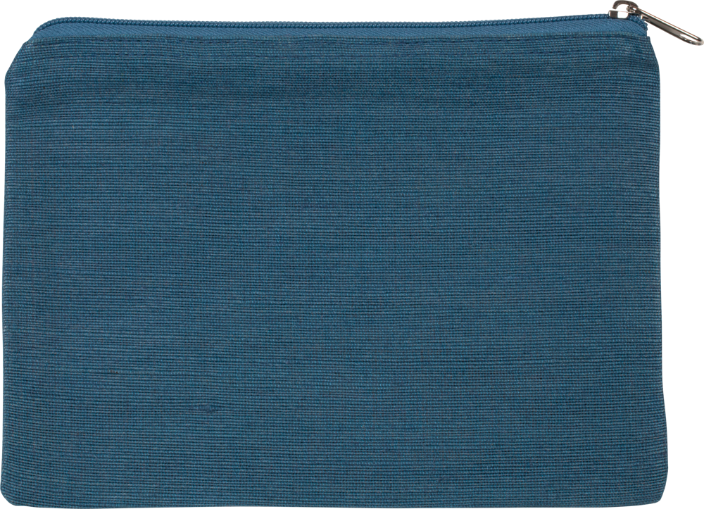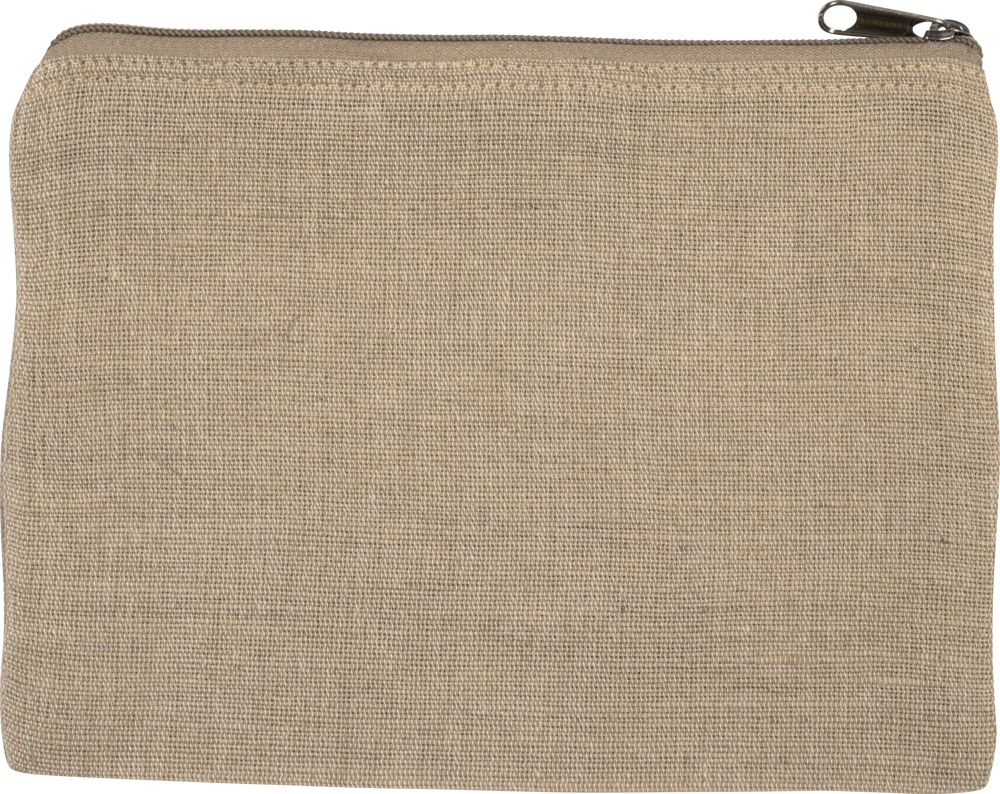 This pouch is crafted from a blend of jute and cotton (juco).