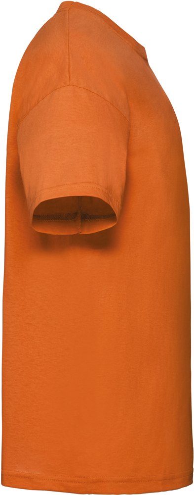 100% katoen. (Heather Grey 97% katoen / 3% polyester – andere Heather kleuren 50% katoen / 50% polyester). Kraag in rib met katoen / Lycra®. Toon-op-toon nektape. Rechte tubulaire snit.