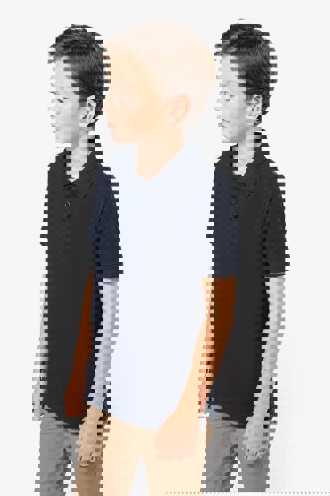 100% katoen piqué. Wasbaar op 60°C. Kraag en mouwuiteinden in rib. Nektape en zijsplitjes in contrastkleur. Knooplijst met 3 knopen. Afwerking met dubbele stiksels aan de onderkant.