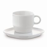 This is the Square Satellite Cup & Saucer, a high-quality porcelain set with a 180ml capacity. This white cup and saucer is ideal for your business clients, associations, or events. You can brand this item with your own logo.