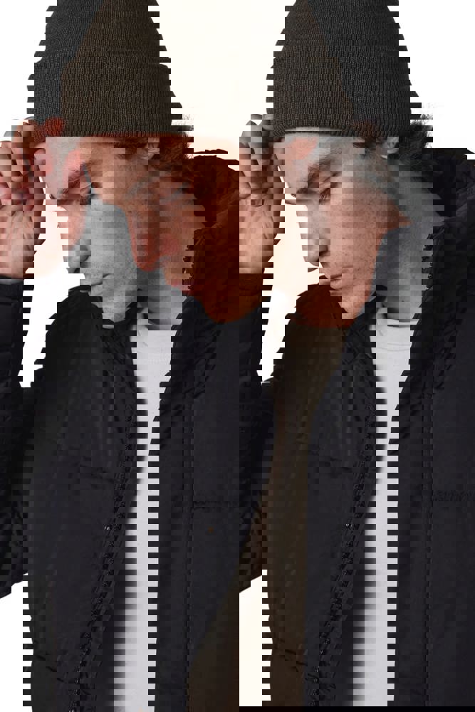 This beanie is made from 40% recycled polyester, 20% polyester, and 40% acrylic. It features a soft Thinsulate fleece lining. The beanie has a classic knitted design with a fold-over cuff. It is available in one-size. You can choose from various colors including Navy, Black, Forest Green, White, Red, Royal Blue, Dark Grey, Grey Heather, Oxford Grey, and Dark Khaki.
