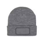 This is a knitted beanie, model KP894, designed for branding. It features a soft acrylic knit and an integrated Thinsulate fleece lining. A cotton patch on the front allows for easy customization.