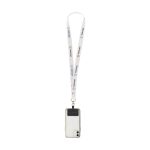 This product is an RPET lanyard. It measures 2 cm in width. The lanyard features full-colour sublimation printing. It includes a metal carabiner and a universal patch. You can attach your smartphone to this lanyard using the patch. This allows you to carry your phone securely around your neck.