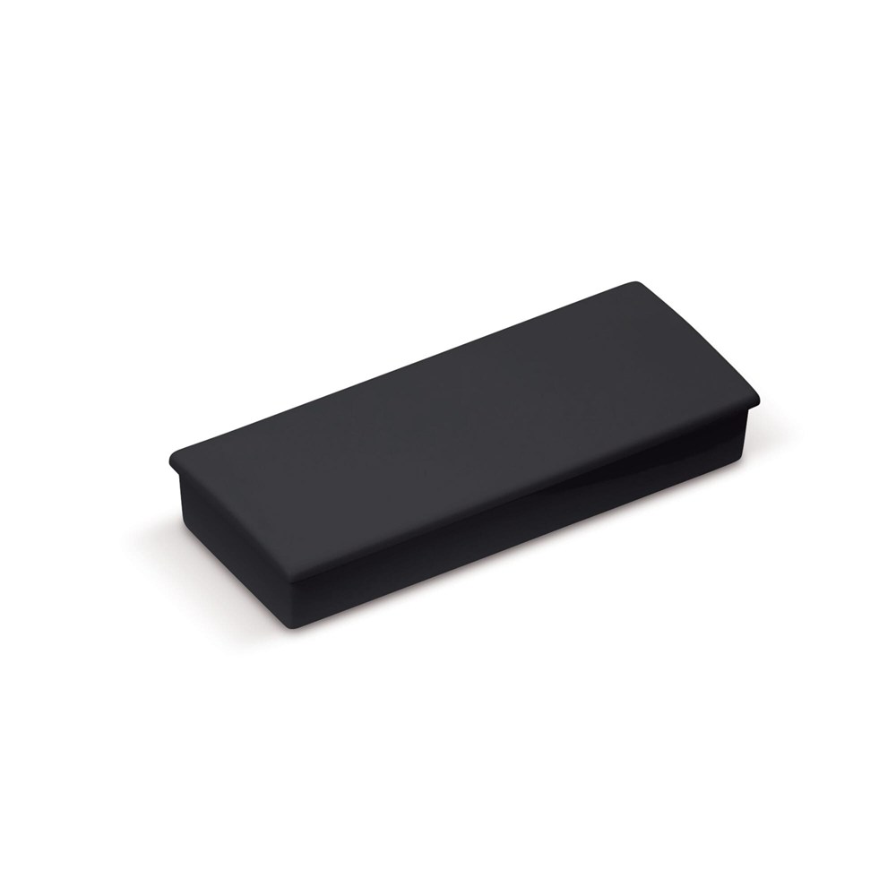 The magnet features a rectangular shape. It is constructed from durable plastic. This material ensures longevity and resilience. The magnet is available in White and Black. It provides a strong hold on metal surfaces.