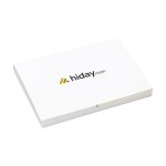 This memo block can be personalized. You can add your own logo to the cover. Personalization transforms the memo block into a unique branded item. It enhances your brand visibility effectively.