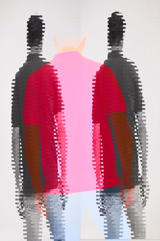100% ringgesponnen katoen (Light Oxford: 93% ringgesponnen katoen / 7% polyester). Piqué. Nektape. Zijsplitjes. Versterkte schoudernaden. Kraag en mouwuiteinden in 1×1 rib. Knooplijst met 2 knopen. Reserveknoop.