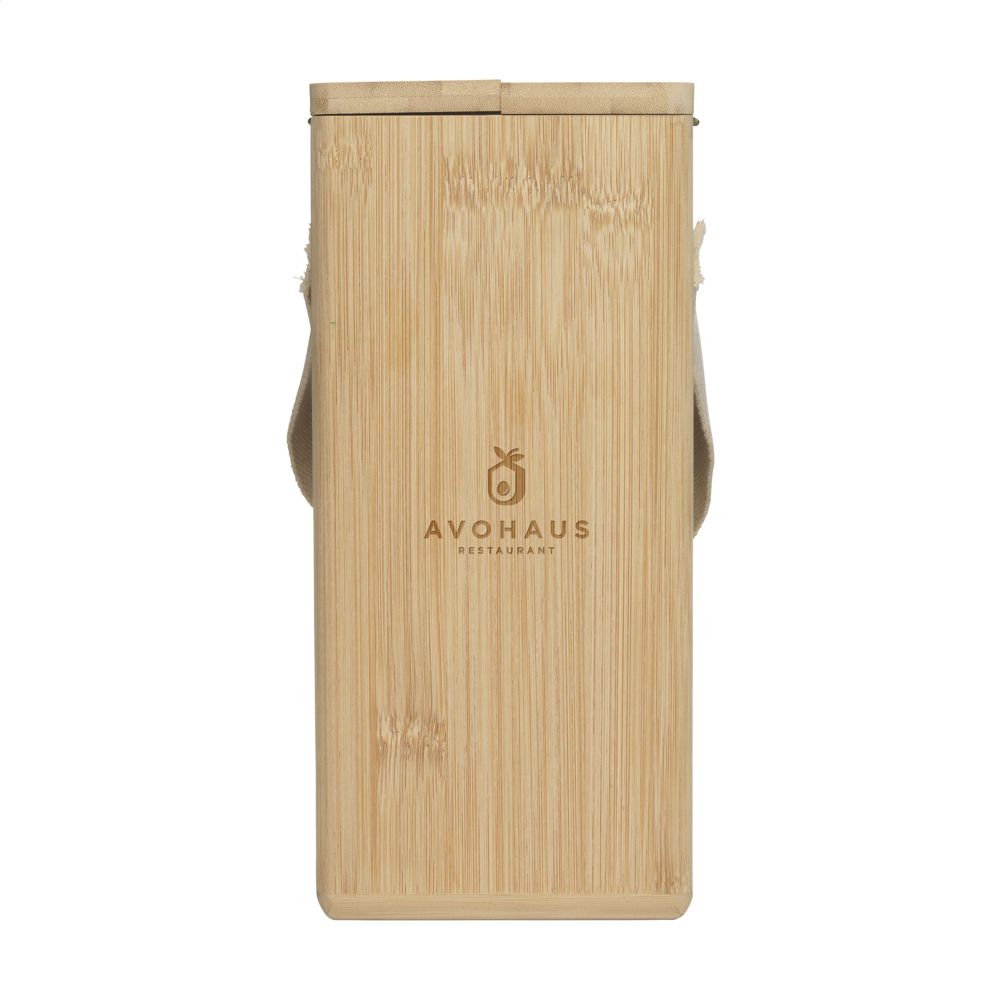 This is the Jeffrey Metal Snap-Off Knife. It is a practical tool with a carbon steel blade. The handle features a durable bamboo grip. This knife serves as an effective promotional item.