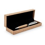 This is a metal promotional pen. It features a natural cork grip. The pen comes in a luxury gift box.