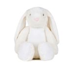 100% polyesterpluche. Crèmekleurige zachte pluchen konijn. Flaporen. Contrasterende roze neus. Genaaide ogen. Crèmekleurig paneel op de borst en poten. Ritsdetails op het lichaam van het konijn voor directe toegang tot de buik voor borduurwerk. Verwijderbaar binnenvulsel. Voldoet aan de Europese veiligheidsvoorschriften voor speelgoed EN71. Verwijder alle kaartjes en hun bevestigingsmiddelen voordat u dit aan een kind geeft. Geschikt voor alle leeftijden.