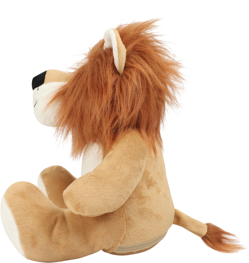 You can easily personalise this plush lion. We can add your company logo. This allows for effective branding. The lion features a zipper on its belly. This provides direct access for embroidery. The inner filling is removable for this process.