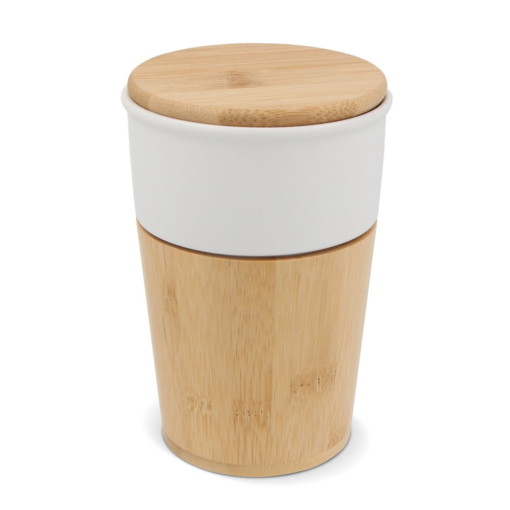 The Vienna Mug 300ml is a ceramic mug designed for everyday use. It features a natural bamboo exterior and a matching lid. This mug offers a 300ml capacity. It provides a touch of natural elegance with every sip.