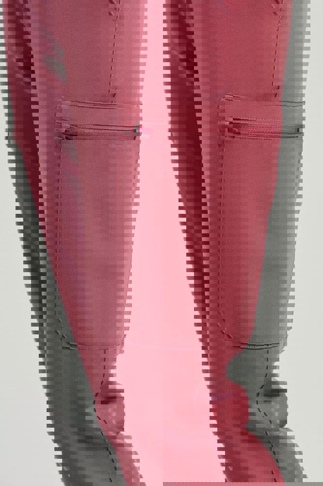 These cargo pants are made from a blend of materials. The composition is 42% polyester, 33% recycled polyester, 19% viscose, and 6% elastane. This blend ensures flexibility and durability. The pants feature practical zipper pockets. They have a partially elastic waistband for comfort. A false fly adds to the design. Slits in the hem allow for movement. The fabric is breathable. You can select from sizes XS, S, M, L, XL, XXL, and 3XL. Available colors include Navy, Black, Ceil blue, Clean Green, Dynamo Grey, and Calm Pink.