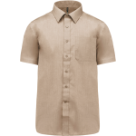 65% polyester / 35% katoen. Gemakkelijk in onderhoud (Easy Care). Verstevigde kraag met baleinen. Toon op toon knopen. Borstzakje. Dubbel inzetstuk op de rug. Afgewerkt met dubbele vouwnaden. Verstelbare mouwen. 2 extra knopen.