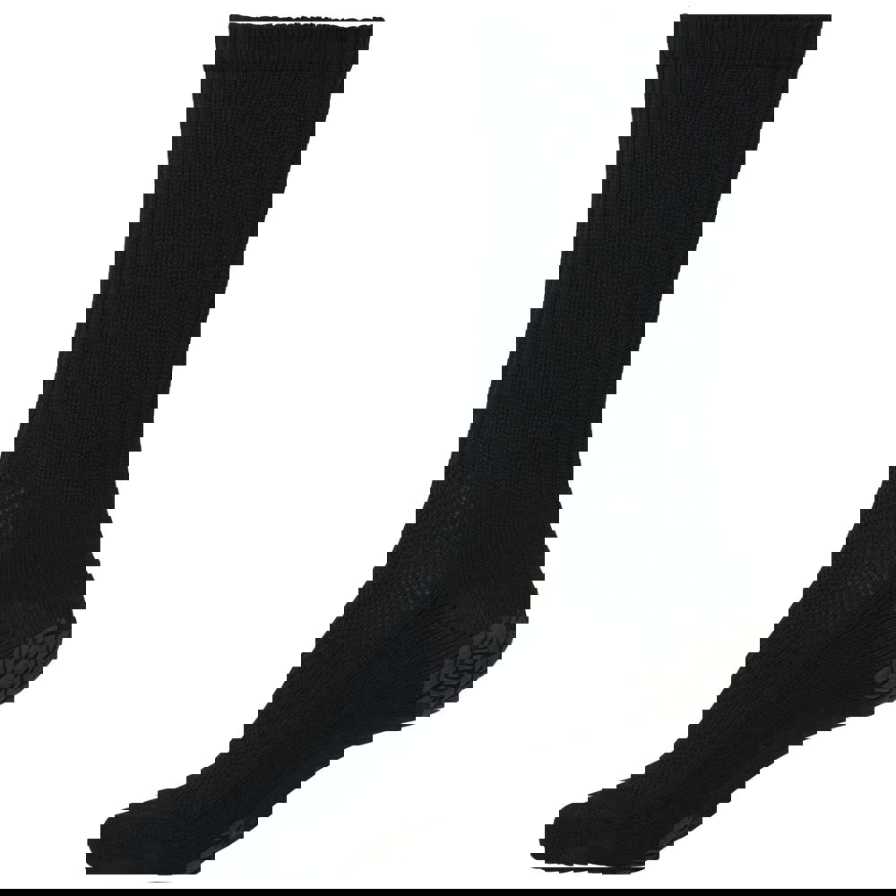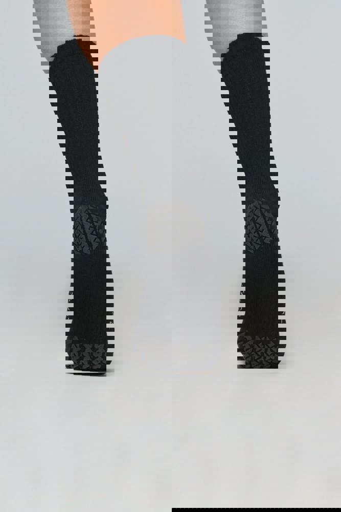 72% polyester / 25% katoen / 3% elastaan. Bouclé binnenin. Platte teennaad. Ergonomisch breisel voor meer comfort en ondersteuning. Anti-slip noppen onder de zool. Geleverd in een individuele verpakking en kartonnen doos, klaar om in het rek te hangen.