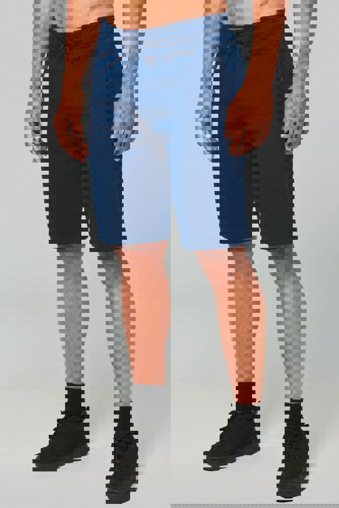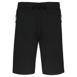 65% polyester / 35% katoen. Geborsteld fleece aan de binnenkant. Elastische tailleband met toon op toon aanrijgkoordjes. Voor meer comfort werd de binnenkant van de taille afgewerkt met een zachte elastiek met een contrasterend, fluorescerend biesje. 2 fantasie-zijzakken met ritssluiting, zak van mesh en een contrasterende, fluorescerende gsm-zak. 1 opgezette achterzak. Afwerking met dubbel stiksel onderaan de broekspijp.