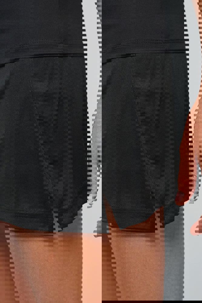 100% polyester interlock. Voering short: 86% polyester / 14% elasthan. Elastische tailleband. Ondershort met 2 tennisbalzakken.
