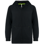 Kangaroo pockets offer storage; one includes a fluorescent phone pocket.