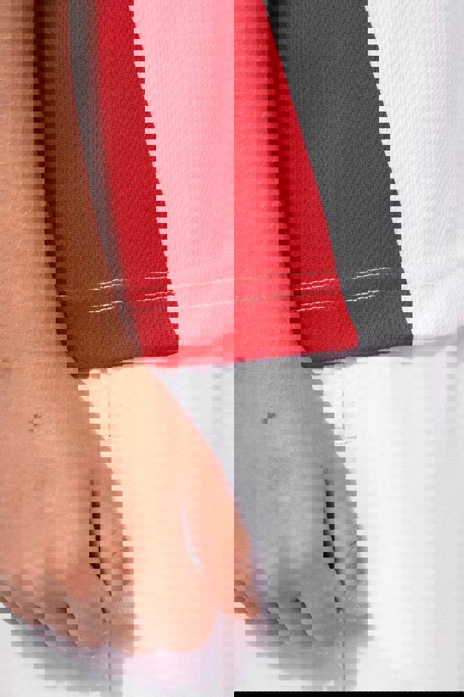 You are looking at a versatile Kids' Sports Shirt. This quick-drying, two-tone ecological shirt is made from 100% post-consumer recycled birdseye-polyester. It is designed for various promotional activities. You can use it for events and trade shows. This sports shirt is ideal for business customers, associations, and events.