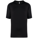 The main material is 90% polyester and 10% elastane. The birdseye parts consist of 92% polyester and 8% elastane. This T-shirt has moisture-wicking properties. It features a straight cut. Raglan sleeves provide comfort. The round jersey neck includes a tone-on-tone insert. A tone-on-tone jersey neck tape is present. Contrasting birdseye knit panels are on the sides, sleeves, and back. For the Black color, these panels are plain. Double stitching secures the sleeve ends and bottom hem. A tear-away brand label allows for re-branding. Sizes range from S to 3XL. Available colors include Black, White, Fine Grey, Marl Dark Grey, and Marl Sporty Navy.