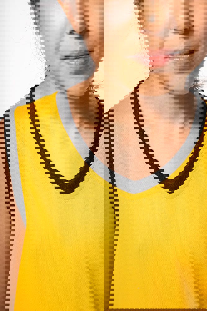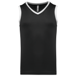 This is the Children's Basketball Jersey PA4052. It is made from breathable birdseye polyester fabric. This jersey is designed for comfort and performance. It is ideal for young athletes and promotional activities.