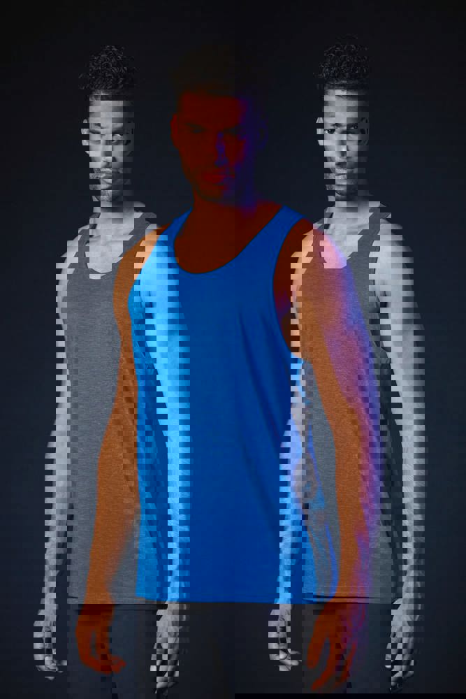 The top is made from a blend of 50% polyester, 25% cotton, and 25% viscose. It features a close-fitting cut. It has a classic round neck design. The finish includes durable double stitching. A tear-away label ensures comfort. This design offers high wearing comfort. Available sizes include S, M, L, XL, and XXL. You can choose from colors like Black, White, Dark Grey Heather, French Navy Heather, and Sporty Royal Blue Heather.