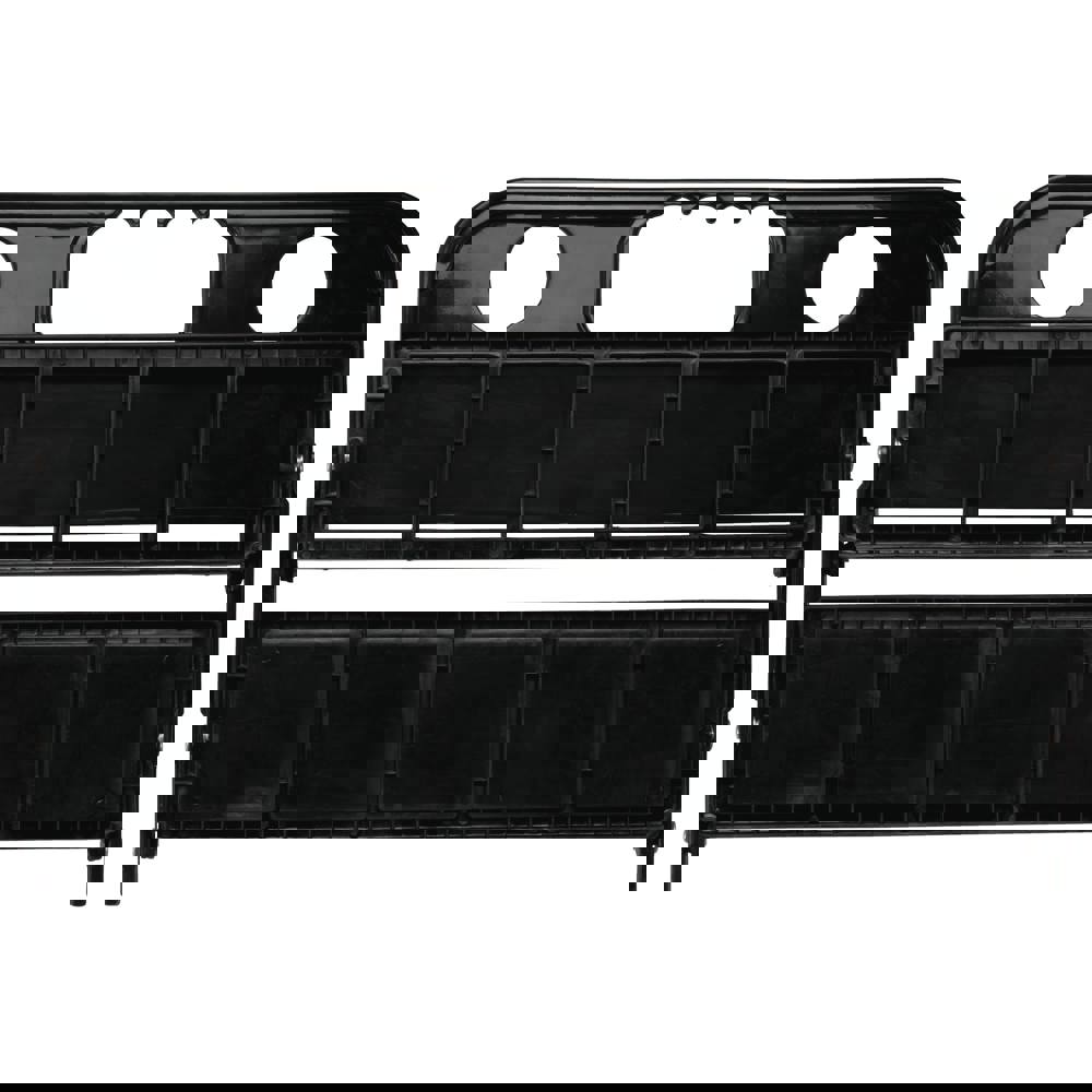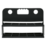 This bottle holder has a capacity for 10 bottles. It is constructed from robust polypropylene material. The design allows for simple folding and unfolding. The bottle holder is available in a black color. It offers a stable and secure method for transporting multiple bottles.