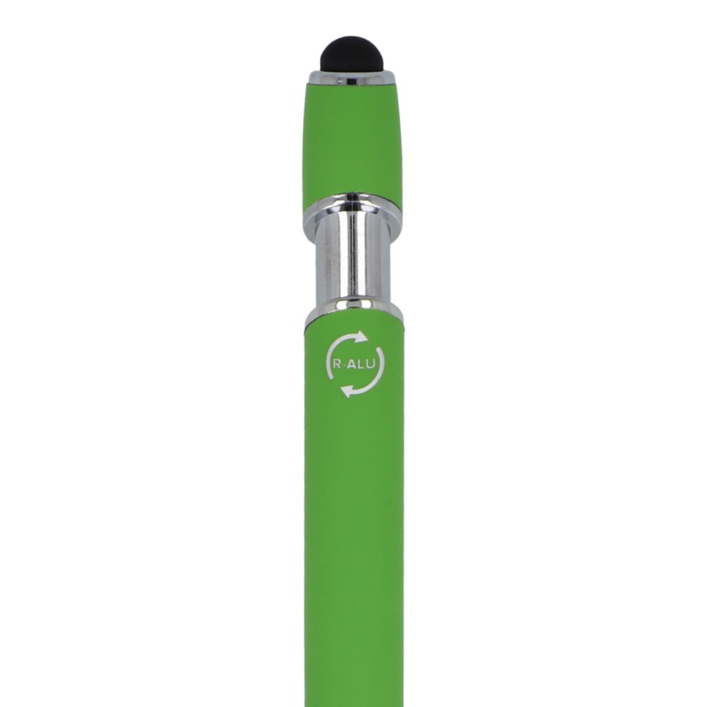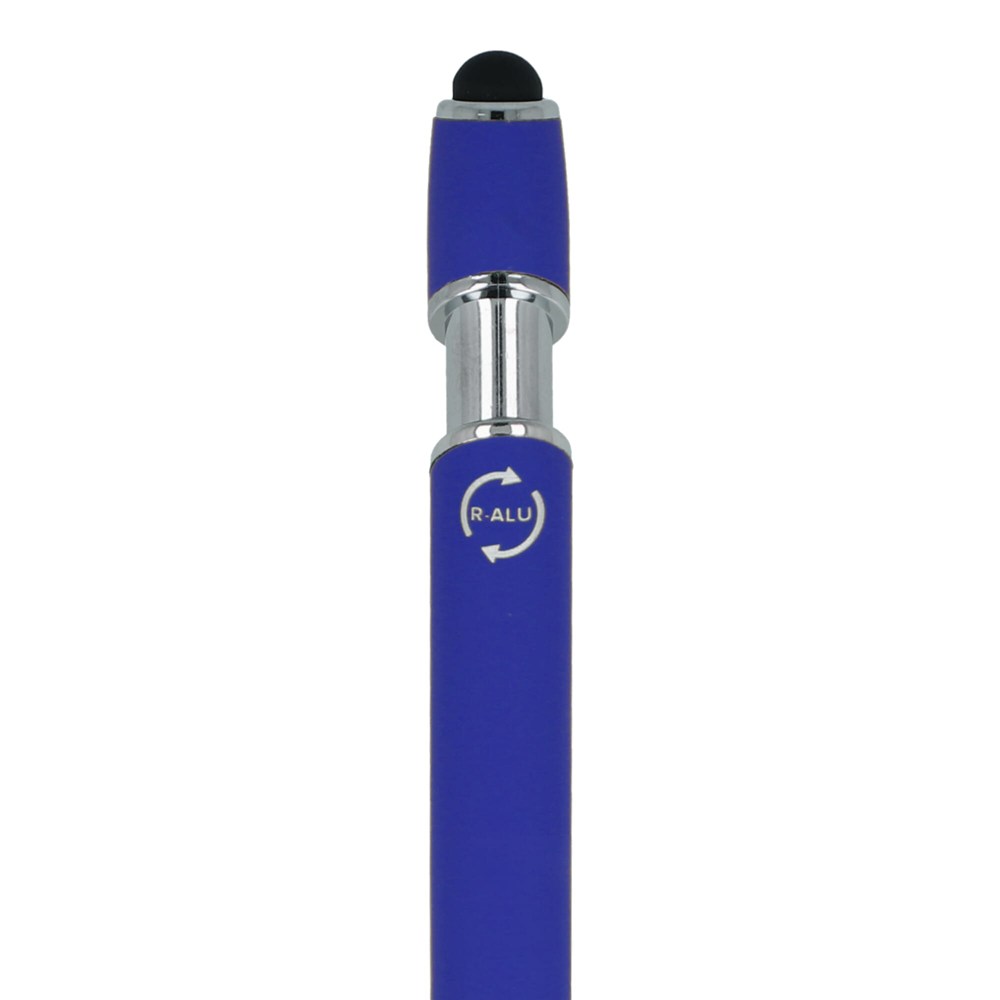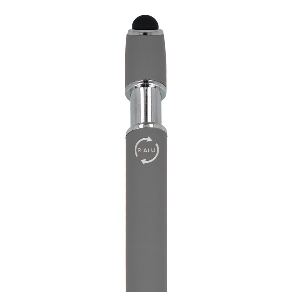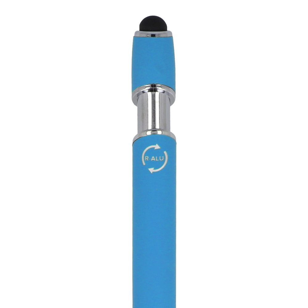 The pen is crafted from recycled aluminum, supporting sustainable practices. It features a soft-touch finish for a comfortable grip. The ink color is black, ensuring clear and professional writing. The design includes a sturdy clip for easy attachment to notebooks or pockets. Available colors include White, Black, Red, Grey, Orange, Yellow, Blue, Dark Blue, Light Blue, Light Green, Pink, Dark Green, and Dark Red.