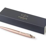 A: The metal ballpoint pen is available in four appealing colors: sophisticated Black, polished Silver, contemporary Pink ballpoint pen, and luxurious Gold. This allows you flexibility in matching the pen to your brand guidelines.