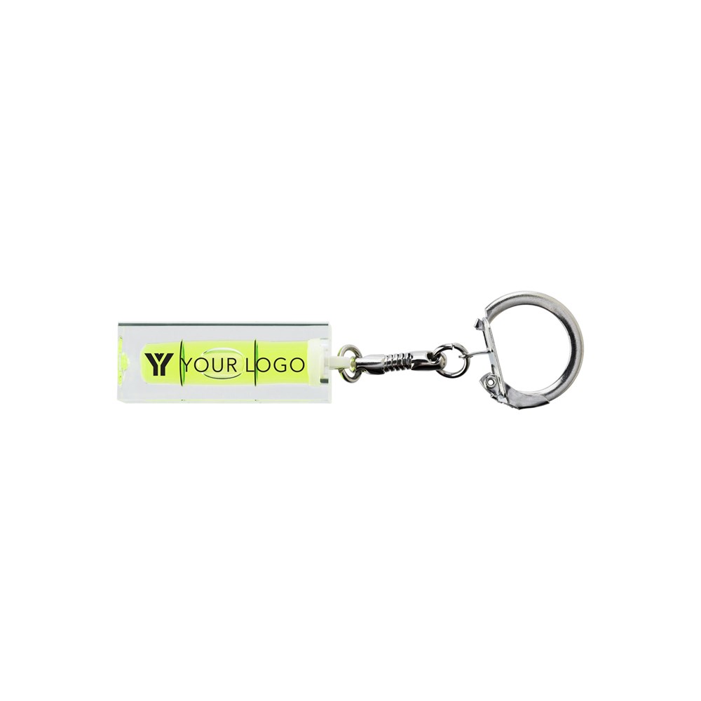 The main body of this promotional spirit level keychain is made from PET (recycled plastic), making it an excellent choice for businesses prioritizing eco-friendly merchandise.