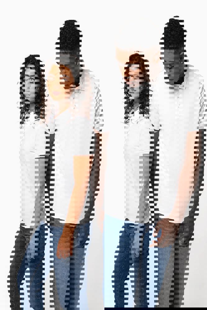 100% katoen. Gekamd katoen. Piquétricot. Rechte snit. Zijnaden. Gemaakt in Portugal. 1×1 ribboord aan hals en mouwuiteinden. Knooplijst met 3 contrasterende parelmoeren knopen op alle kleuren. Bijpassende nektape in de hoofdstof in de kraag. Verstevigde schouders. Zijsplitten. Boord onderaan afgewerkt met dubbel stiksel. Geen merklabel, enkel een afscheurbaar maatlabel voor eenvoudige personalisatie.