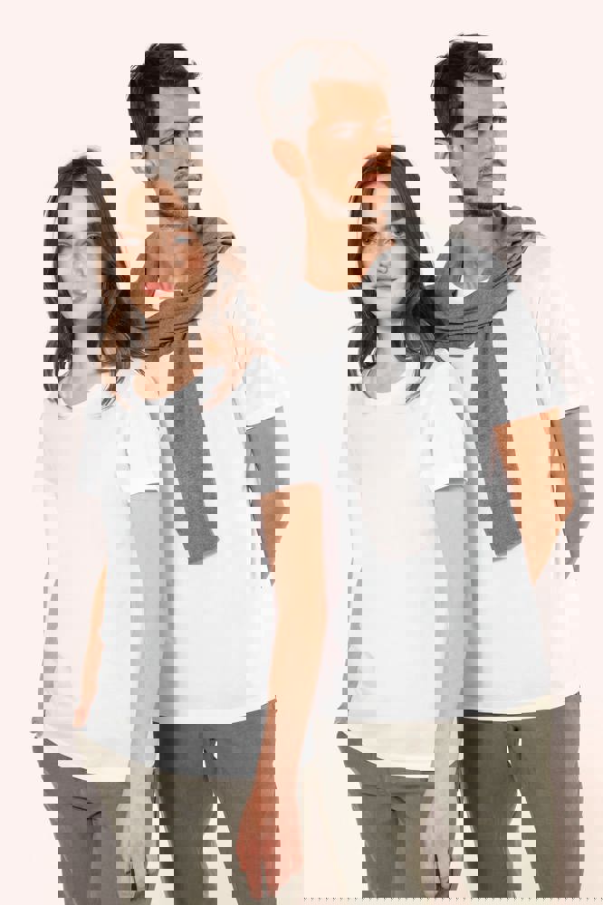 100% katoen. Tricot van gekamd Supima® katoen. Heel fijne, zachte en zijdeachtige jersey van grote kwaliteit. Gesneden en genaaide constructie. Ronde hals met ton-sur-ton nektape. Versteviging van de schoudernaad met een silicone bandje. De mouwuiteinden en onderkant zijn afgewerkt met een zoompje met dubbel stiksel. Geen merklabel in de kraag, maar enkel een maatlabel voor eenvoudige personalisatie.
