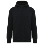 70% katoen / 26% polyester / 4% elasthan. Gekamd katoen. Interlockstof. LSI-behandeling (Low Shrinkage Interlock). Capuchon met 2 panelen, gevoerd met dezelfde stof als de rest van het jasje, geen koordje. Stiksel in de kraag. Nektape aan de binnenkant van de halsopening. Ton-sur-ton nylon rits met metalen trekker en nektape aan de binnenkant. Raglanmouwen. 1×1 ribboord. 2 zakken in de naad van het inzetsel. Geen merklabel, maar enkel een maatlabel voor eenvoudige personalisatie.