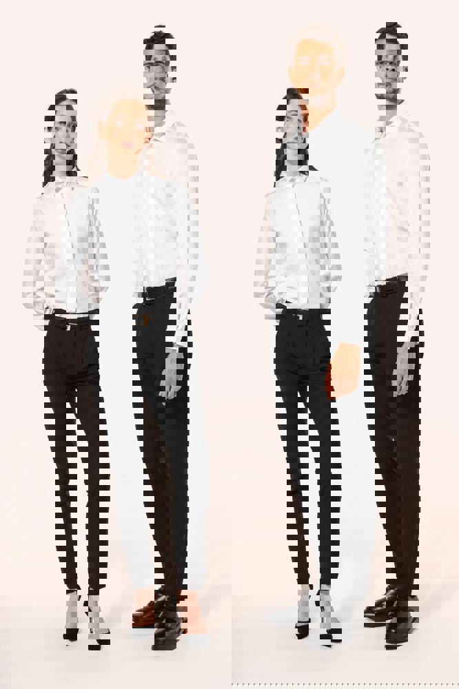 100% katoen. Twillstof. Gemakkelijk in onderhoud (EasyCare-behandeling). Dubbel getwijnd garen 80 x 2 van topkwaliteit. Italiaanse kraag met uitneembare baleinen. Paarlemoeren knoopjes. Inzetsel aan de bovenkant van de rug. 2 plooien op de achterkant. Fitted pasvorm. Manchetten met 2 knopen met afgeronde hoeken. Verstevigende driehoekjes op de zijkanten. Geen merklabel, maar enkel een maatlabel voor eenvoudige personalisatie.