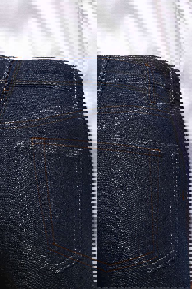 99% denimkatoen / 1% elasthan. 32 kg. Ritssluiting met een metalen knoop en metalen klinknagels in dezelfde kleur, namelijk Old Brass. Twee zakken aan de voorkant, waarvan één met ticketzak. 2 opgezette achterzakken. Contrasterende, wijnrode naden. Tailleband met lussen en contrasterende binnenband aan de achterkant. Straight snit. Deze jeans werd gewassen met een speciale behandeling, waardoor er kleurverschillen kunnen zijn tussen de kledingstukken. Naarmate hij vaker wordt gewassen, krijgt hij een mooi patina. In contact met lichte kleuren kan de jeans kleur afgeven. Was hem apart. Geen merklabel, maar enkel een maatlabel voor eenvoudige personalisatie.