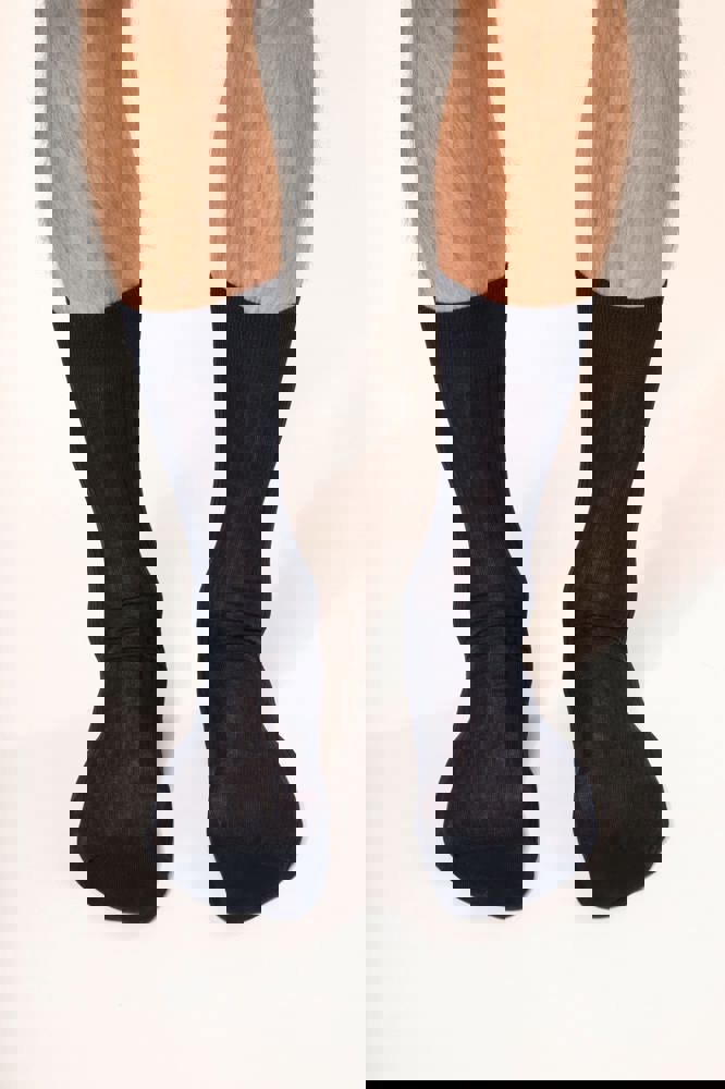 99% gemerceriseerd katoen / 1% elasthan. Fil d’Écosse. Geribde afwerking. Sokken gemaakt in Italië. Gauge 18. Verstevigde hiel en tenen.