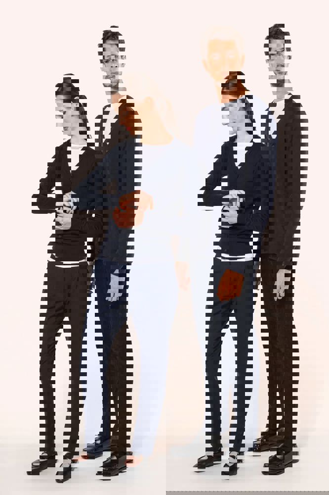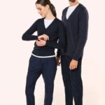 100% Supima® katoen. Gekamd katoen. Gauge 12. Stof van topkwaliteit. Fully-fashioned: gebreid in de vorm en geassembleerd op de machine. Halsopening, mouwuiteinden en onderkant in 1×1 ribboord. Knoopsgat met plastic knopen. Ton-sur-ton.