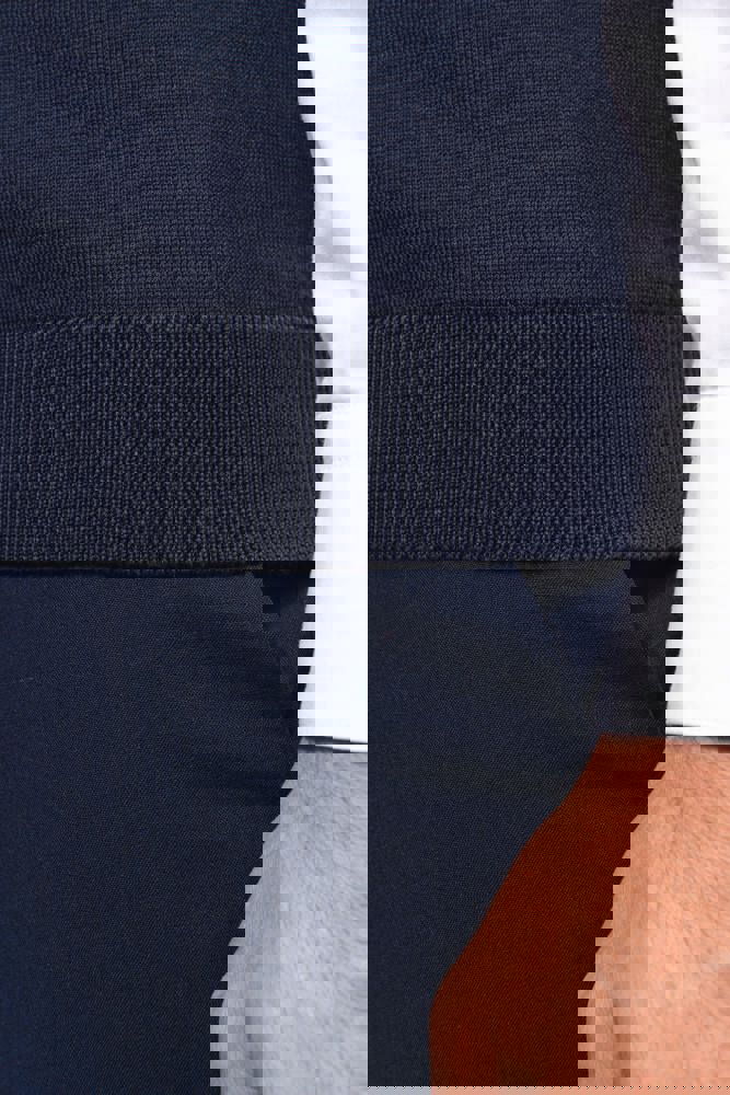 100% Supima® katoen. Gekamd katoen. Gauge 12. Rechte snit. Fully-fashioned afgewerkte mouwopening: gebreid in de vorm en geassembleerd op de machine. Halsopening, knoopsgat en onderzijde in 1×1 ribboord. Mouwopening in gevoerde 1×1 ribboord. Knooplijst met toon-op-toon knopen. Geen merklabel, maar enkel een maatlabel voor eenvoudige personalisatie.