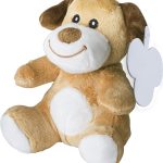 Plush toy dog. Embroidery eyes. Includes a tag for printing purposes.