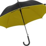 Discover this large coverage promotional umbrella crafted from durable 190T high quality polyester, designed for resilience against unpredictable weather. The solid metal shaft and eight strong metal ribs offer exceptional stability. Its main advantage? The automatic open umbrella function, ensuring instant protection with the simple push of a button, complemented by a comfortable curved plastic handle and secure Velcro closure. Available in vibrant Red, attention-grabbing Yellow, and classic Green, these weather resistant walking umbrella models are highly effective promotional umbrellas wholesale items.