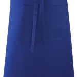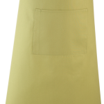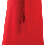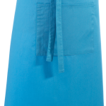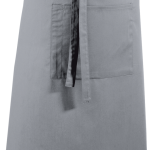 65% polyester / 35% katoen twill. Schort met 1 voorzak met penhouder. Linten in hetzelfde materiaal, 90cm lang. Afmetingen: 80cm lang en 90cm breed. Industrieel reinigen tot 85°C. Huiselijk reinigen tot 60°C.