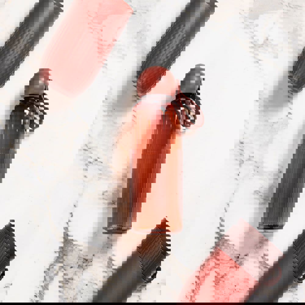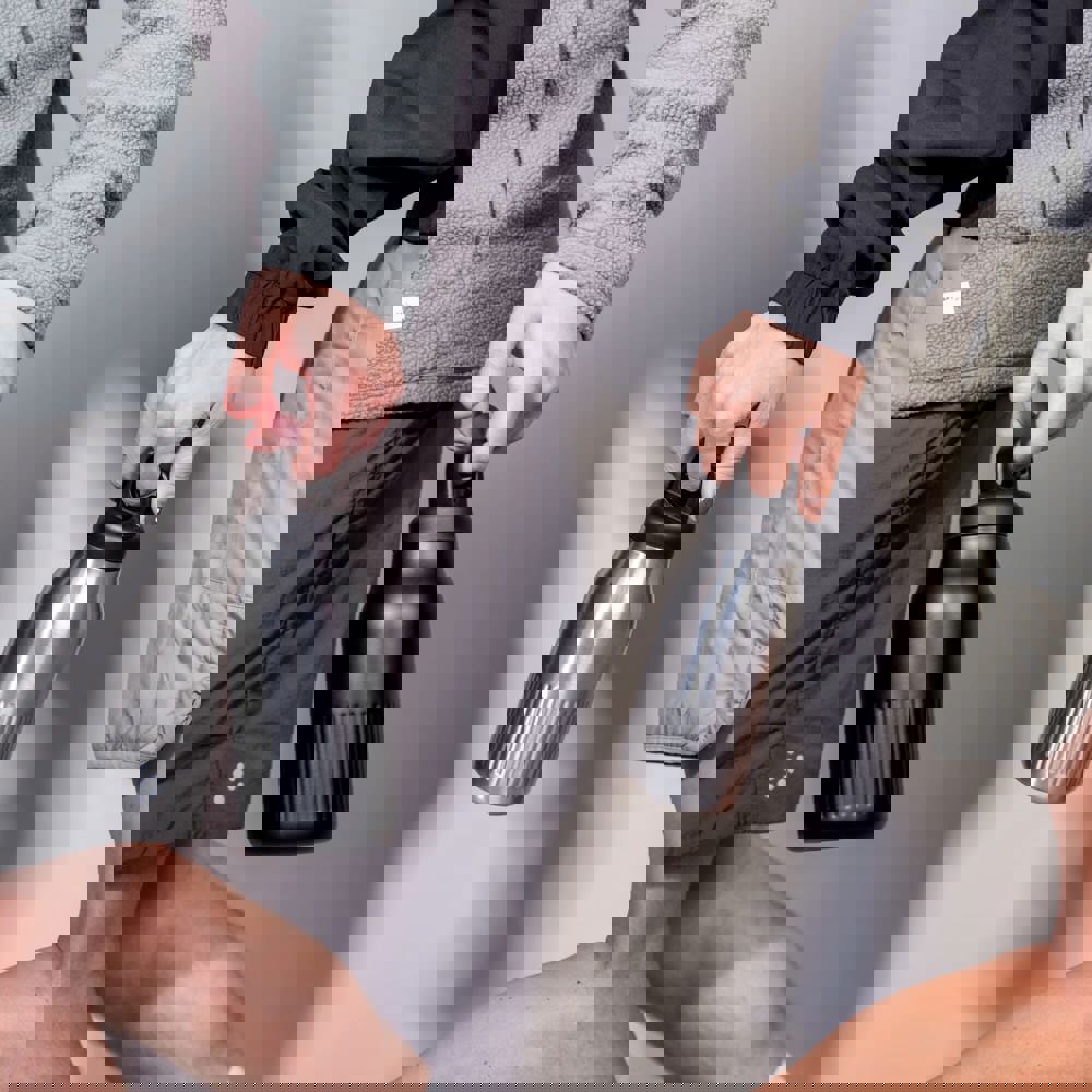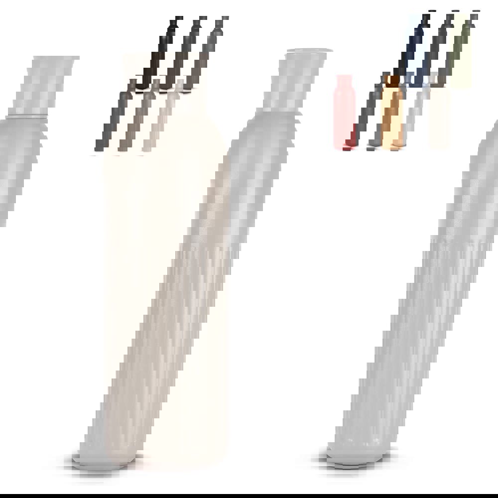 This is the R-Swing recycled soft-touch thermo drinking bottle. It holds 750ml of liquid. This bottle is crafted from recycled stainless steel. It features a soft-touch finish. The bottle offers a comfortable grip. It is double-walled and vacuum insulated. It keeps your drinks hot or cold for extended periods. This bottle is also leak-proof for convenient use on the go.