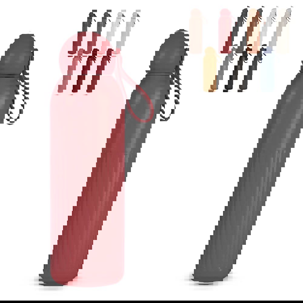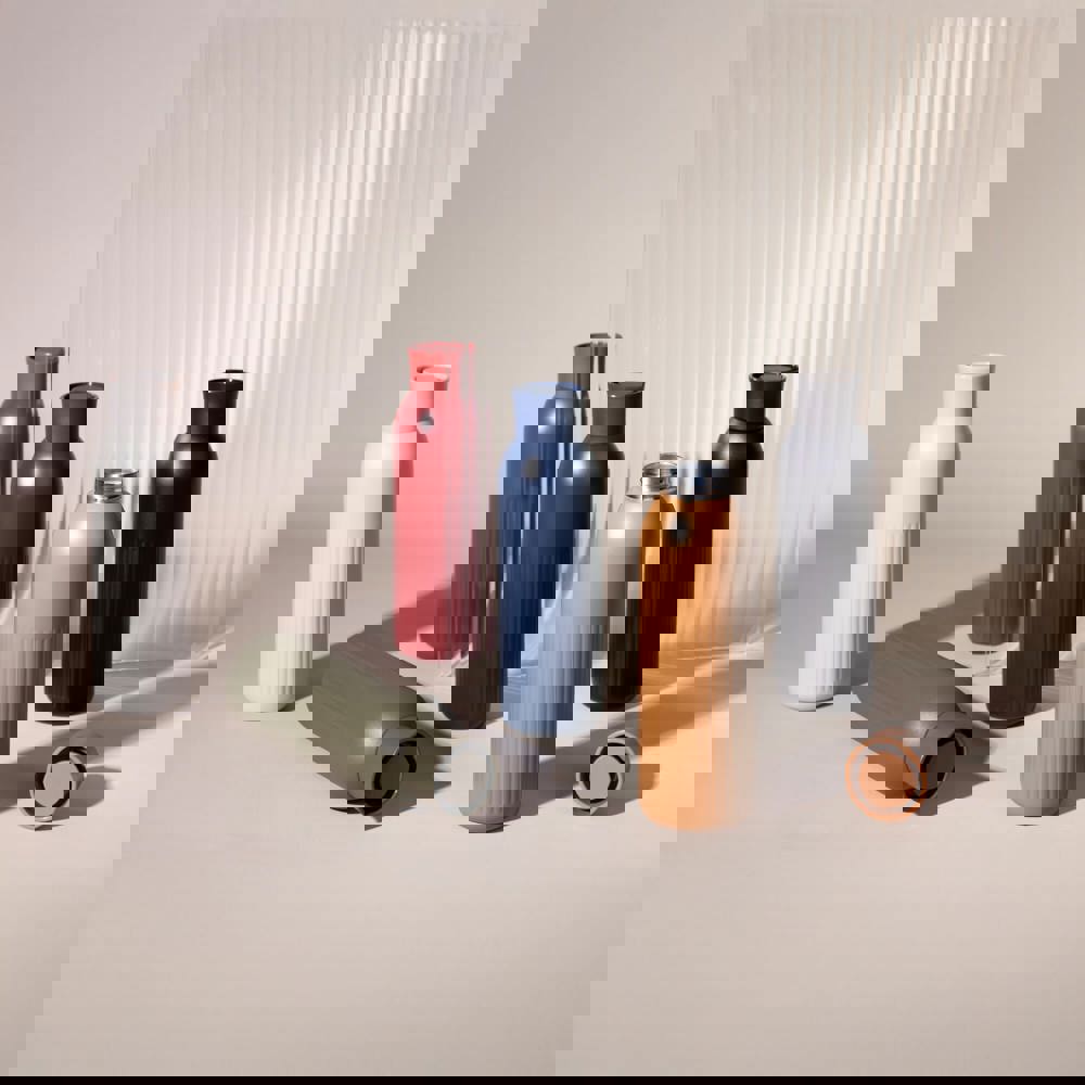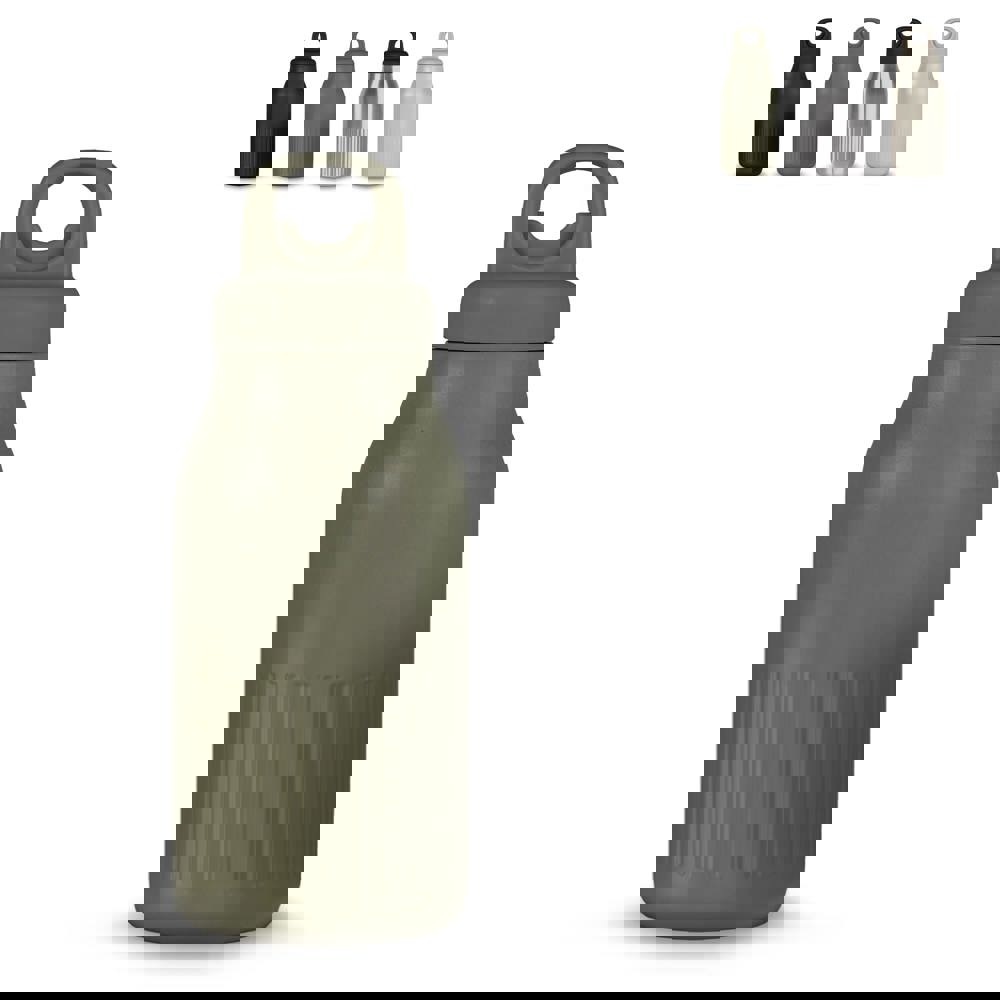 The R-Swing drinking bottle has a capacity of 750ml. It is made from recycled stainless steel. This material ensures robust durability. The bottle features double-walled vacuum insulation. It effectively maintains beverage temperature. The soft-touch finish provides a pleasant feel. It is engineered to be completely leak-proof. This drinking bottle is available in multiple colours. You can choose from Black, Red, Grey, Blue, Dark Blue, Olive Green, and Beige.