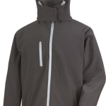 Drielaagse stof. Buitenkant: 93% polyester / 7% elasthan. Tussenlaag: waterdicht (8.000mm), ademend (1.000g/m²/24h) & TPU membraan. Binnenkant: 100% polyester microfleece. Waterafstotende finish en winddicht. Stormoverslag aan de binnenkant. Decoratief inzetstuk op de rug. Volledige ritssluiting. Zijzakken met rits. Borstzak met rits. Afneembare en verstelbare capuchon.